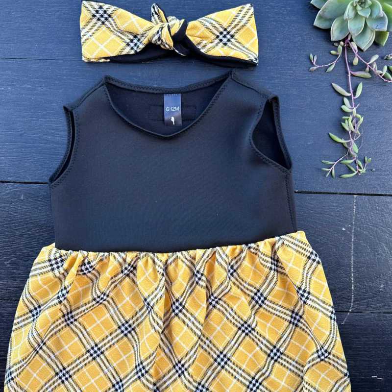 / Black Yellow Plaid__1 Dress and headband