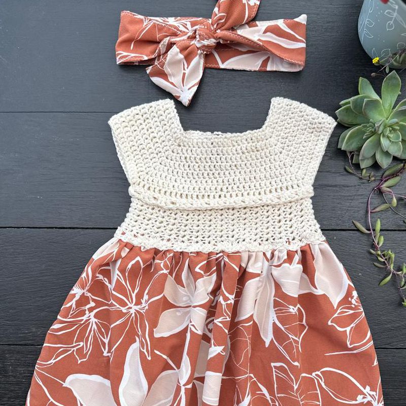/ Cream and Brown Flower heydi-bo dress and Headband