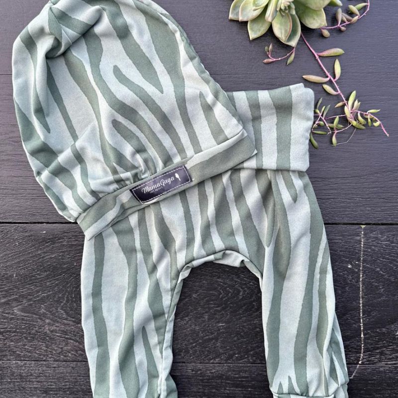 Khaki Green Tiger Cuffs harem pants and Beanie